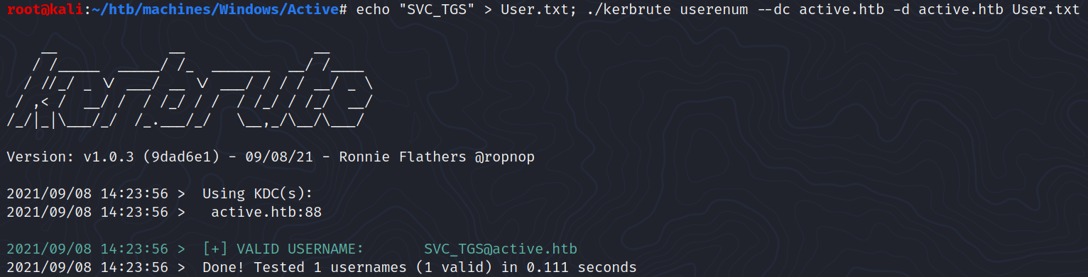$ ./kerbrute userenum --dc active.htb -d active.htb User.txt