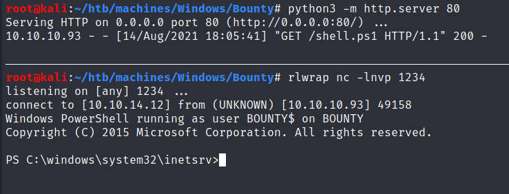 $ nmap -min-rate 5000 --max-retries 1 -sV -sC -p- -oN Bounty-full-port-scan.txt 10.10.10.93
