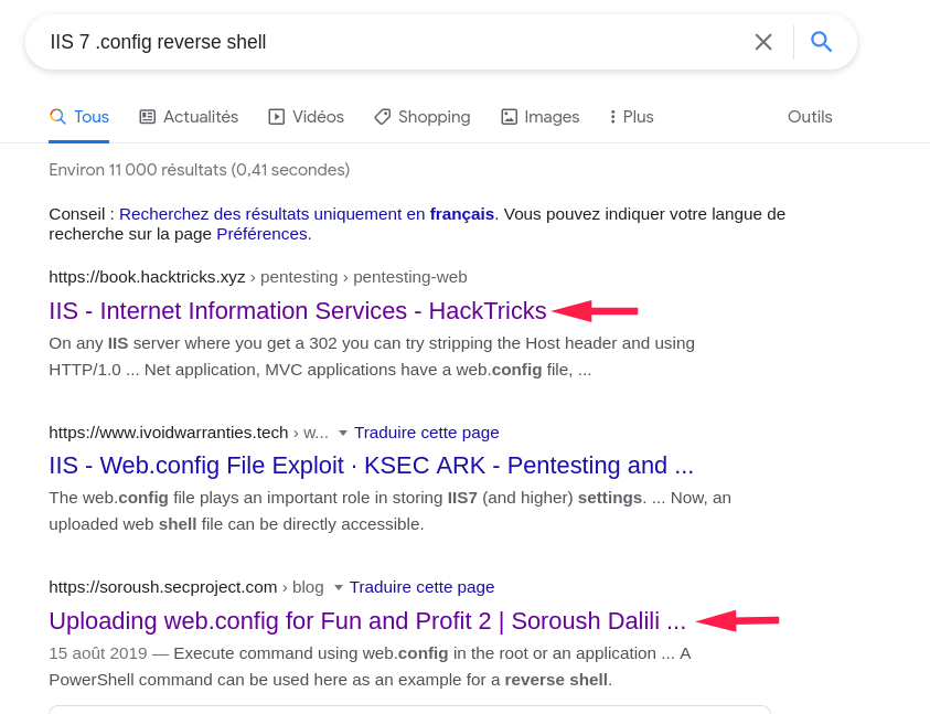 After looking for “IIS 7 .config reverse shell”, we can find two guided articles on how to get remote code extension by uploading web.config file: