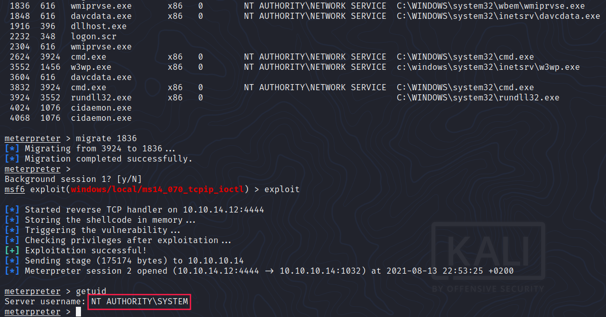 BOUM! We are SYSTEM! This machine was a piece of cake, it was predictable because it’s a very old server with known vulnerabilities that had patches available.