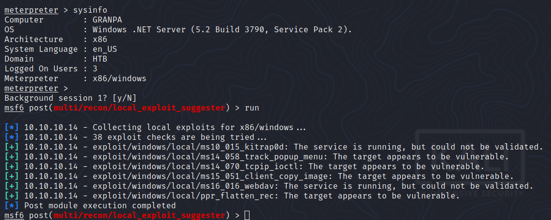 Nice! Now let’s try post/multi/recon/local_exploit_suggester: