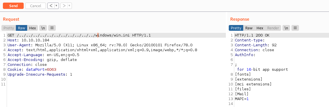 Indeed and if we try to get the Windows/win.ini file, it shows up: