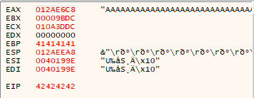 To identify them, we have to send all characters after filling the EIP address and analyze the memory to see where our payload got truncated prematurely.