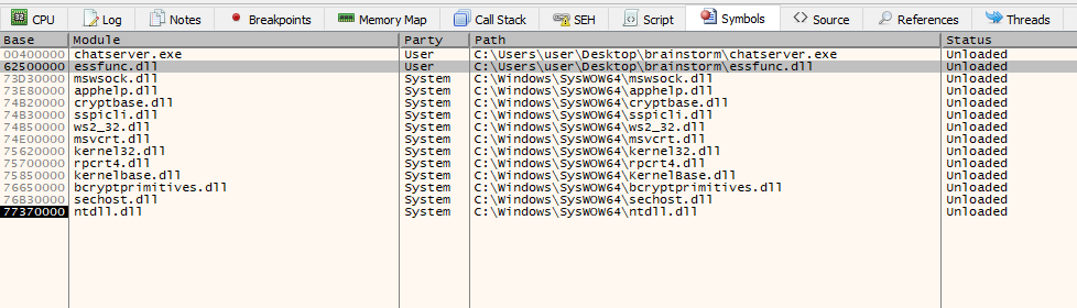0x62500000 0x1420 0xb000 False False False False False C:\Users\user\Desktop\brainstorm\essfunc.dll